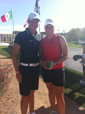 Alice Cooper kom förbi igår när vi tränade. Han skulle ut och spela med sitt band. De var riktigt coolt att se honom. Han var jätte liten, några av tjejerna har tydligen varit riktigt stora fans innan så de var i paradiset efter att ha sett honom. Jag tror att jag upplevde samma känsla som de gjorde med Cooper som jag upplevde idag av att få besöka en LPGA Tour tävling. Många av stjärnorna var där. Jag fick träffa en som jag tycker är häftigast, Suzann Pettersen från Norge. Tyvärr hade vi inte någon chans att titta på tävlingen men det var skoj att bara få känna på stämmningen