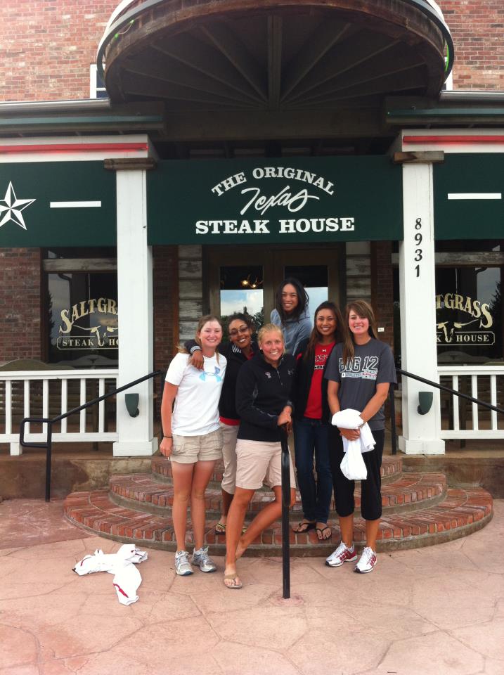 På onsdag smäller de, jag stick hem från Texas till favorit västkusten. Dock har jag en bild av sköna sommarkvällar. Jag tror att jag får ändra de förväntningarna så jag inte blir deprimerad när det kanske regnar där hemma. Annars e de massor att göra såhär de sista dagarna. Jag ska betala flera hyror så jag inte behöver göra det hemifrån. Fixa skatten. Fixa körkort. Fixa hälsokoll. Lämna tillbaka böcker. Flytta ut ur min lägenhet. Flytta till en annan lägenhet. Checka ut från skolan. Osv. Dessa dagar innan jag åker hem har jag valt att göra till en liten viloperiod. Jag har haft en väldigt lång säsong och jag känner mig trött i kroppen. Jag tror det är exakt vad jag behöver. Jag kommer nog spela några niohåls matcher under kvällarna men mest för att det är så jäkla skoj. Annars försöker jag sova ganska så mycket och inte stressa. Jag tar dagen ganska så mycket som den kommer. Det är gött nu när de flesta av mina måsten är avklarade. Imorgon ska jag på graduation. Det är Gabby i mitt lag som är klar, men hon kommer att spela med oss nästa år också. Hon är smart och ska nu börja sin grad-school. Annars är det 30 grader ute och inte så mycket vind. Ikväll funderar vi på att gå på baseball. Jag har aldrig varit på baseball så det hade varit skoj att se vad de killarna går för. Bilden är från sista gången vi i laget var med varandra. Nu ses vi inte förens i Augusti igen, känns super tråkigt men det är så det fungerar.