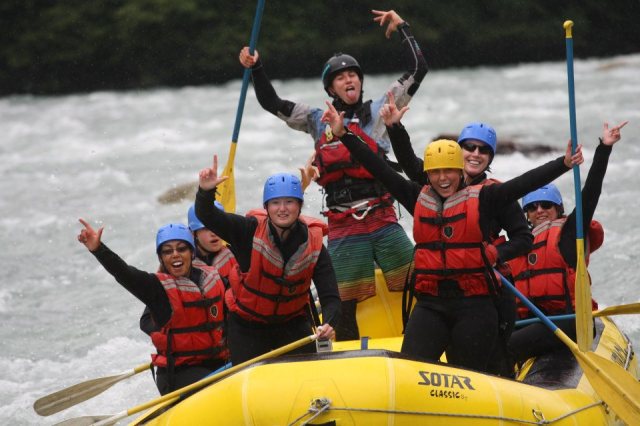 Sista dagen spenderade vi med vår australienska (läs söta) water rafting guide Railey. Vi hämtades upp tidigt på morgonen och sen var de dags att kliva i våtdräckten. Vi åkte ut med buss till en relativt stor flod, fyra gummibåtar i vattnet, sju stycken personer i varje. Jag satt längst fram och såg fram emot att se hur stora vågorna kunde bli. Vi paddlade och vågorna var flera gånger över våra huvud, vilket adrenalin. Sjukt kul! Guiden säger till oss att om vi vill får vi hoppa i vattnet. Jag och Hannah hoppade i innan coach ens hann tänka och hann säga någonting om att det kan vara farligt. Fyra grader i vattnet, men det spelade ingen roll vi var redan pisseblöta efter alla vågor.
