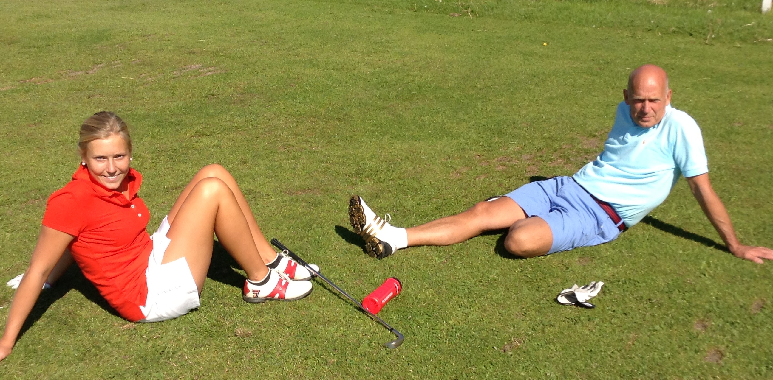 Idag vaknade jag klockan fem. Efter att ha läst i min bok och försökt somna om gav jag mig på ett försök till att fysträna lugnt. De som såg mig under min morgonjogg undrar nog vad det var för snigel som var ute och hade morgon gympa. Jag var mycket försiktig för att inte bli trött i knoppen och därmed inte kunna träna golf resten av dagen.